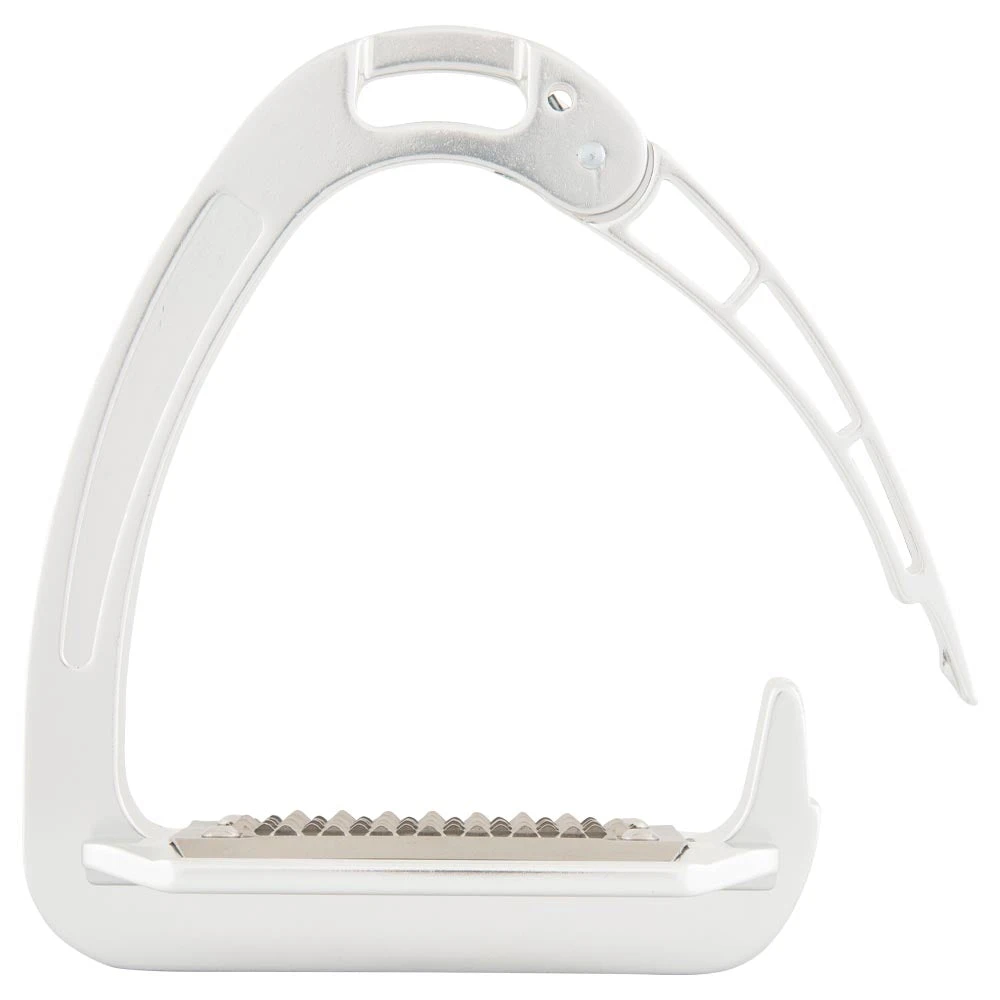 The wide, stainless steel, anti-slip tread features extra long holes to avoid dirt accumulations between the boot sole and the tread. The tread is slightly angled, to keep the heel down. The bevelled opening for the stirrup leather ensures a good stirrup position, keeping the foot in the correct position. This gives the rider more stability and improves leg position. Per pair.
