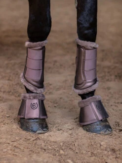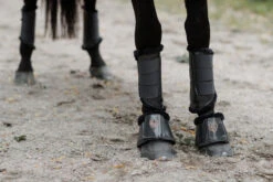 BR Equestrian Shiny Lizard Fleece Brushing Boots Black Silver