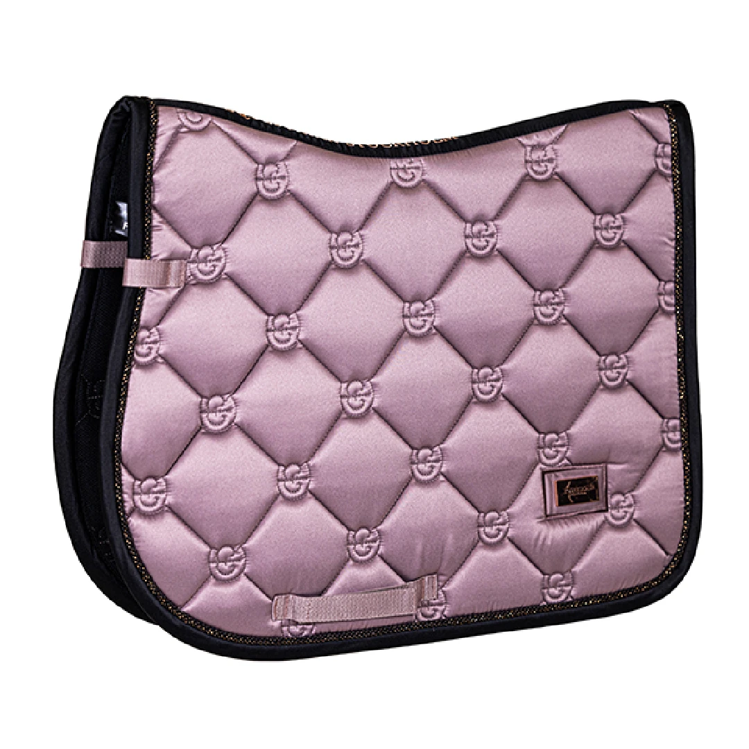 Elegant saddle pad in a pink colour with black and rose gold details. Decorated with the Equestrian Stockholm badge in rose gold. The material is treated with High IQ cool comfort which gives the saddle pad quick dry and moisture wicking abilities. This helps your horse stay dry and fresh longer. Style with other pieces from our Anemone collection for a head-to-toe stylish look.