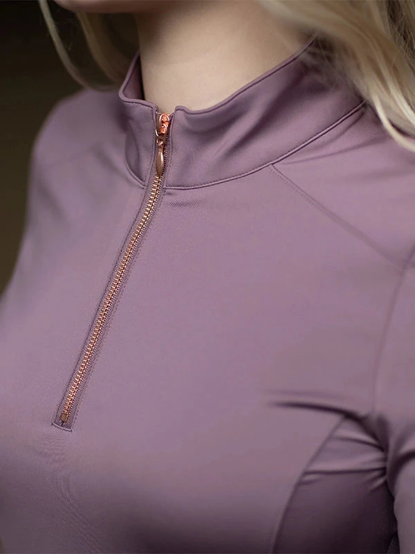 Exclusive and sporty Vision top in a luxurious pink colour with rose gold details. The top is crafted in a breathable, recycled polyester blend with a slim fit and mesh along the sides. Decorated with a vertical Equestrian Stockholm logo on the back and a smaller logo on the left arm. Wear it with other products from the Anemone collection for a complete look.