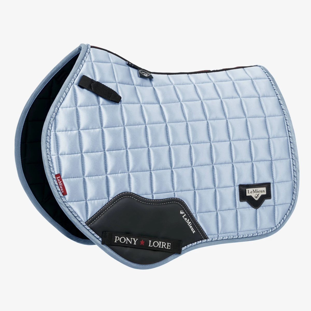 The textured PU leather girth protection area is complimented by an embossed logo and carries the usual signature LeMieux lower girth strap with its inner locking loops and its unique metal badge on a leather mount in the lower back corner.