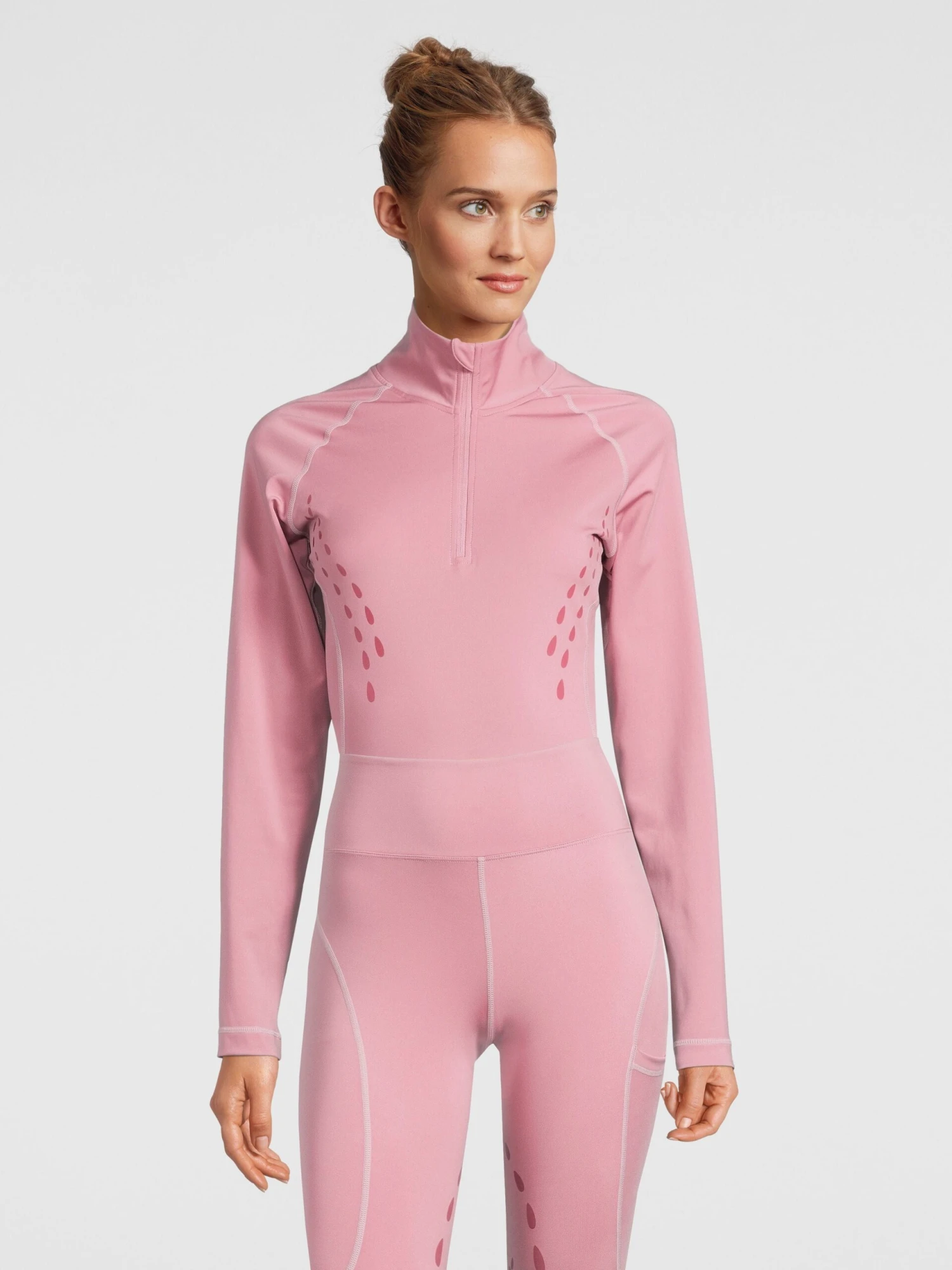 Tiffany is a very comfortable base layer with a high neck and a half-zip. The super stretchy material brings a flattering silhouette and high moveability. Reflective print on the arm and on the neck. This top also have a decorative unique drop-shaped silicone pattern in the front.