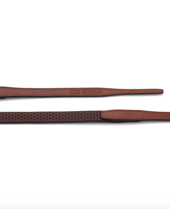 These Italian leather reins feature brass fittings and flexible pimpled rubber grip.Â